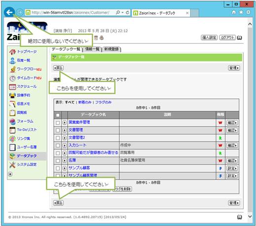 Zaion’nexを操作する上でひとつ前の画面、または元の画面に戻る場合は、必ずZaion’nex