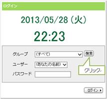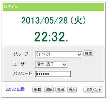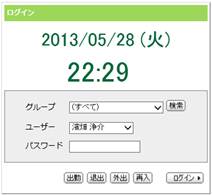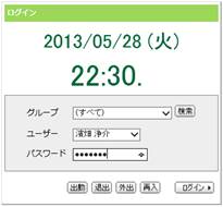 Webレコーダー権限のあるユーザーは、出退勤ボタンを表示しますので、パスワード